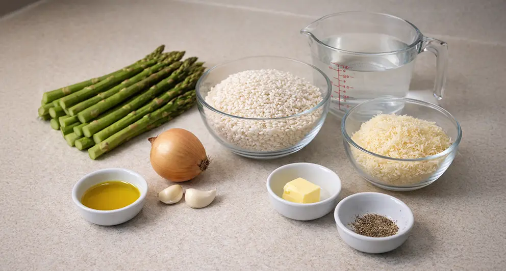 1 porsiyon kuşkonmazlı risotto yaklaşık 350–400 kalori içerir. Kuşkonmazın lifli yapısı sayesinde doyurucu ve dengeli bir öğündür.